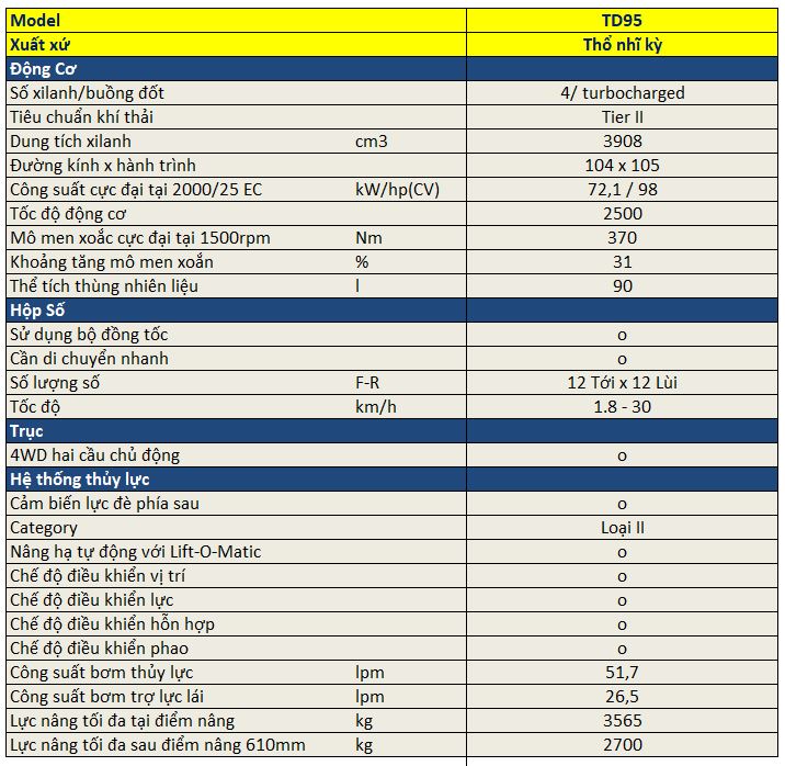 TD95 được thiết kế với sự ưu tiên về hiệu quả công việc. Sử dụng động cơ 8000 series kết hợp Turbo chagre mang lại hiệu suất làm việc và tiết kiệm nhiên liệu tốt nhất. TD95 cũng được trang bị cần tiến lùi nhanh nhằm tăng sự linh hoạt khi hoạt động.